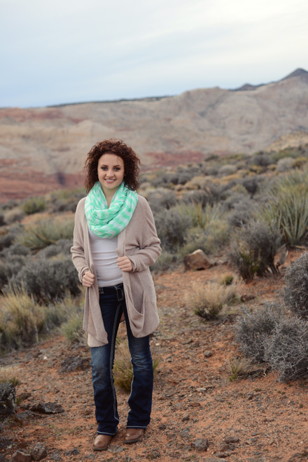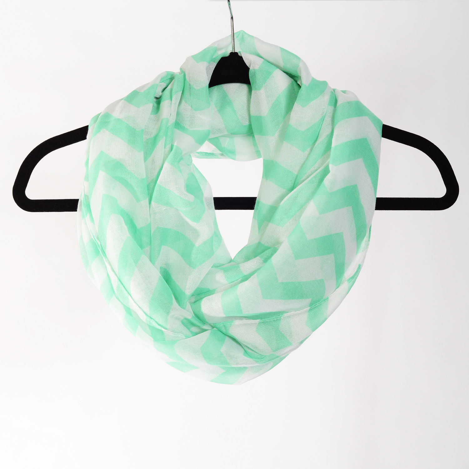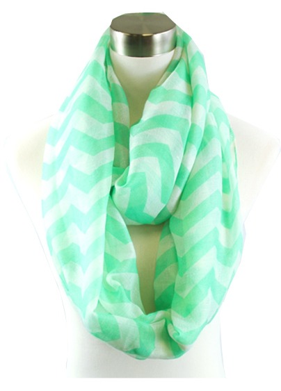 The Mozambique is a mint green chevron infinity. Equally at home on an African safari or a San Francisco shopping safari.